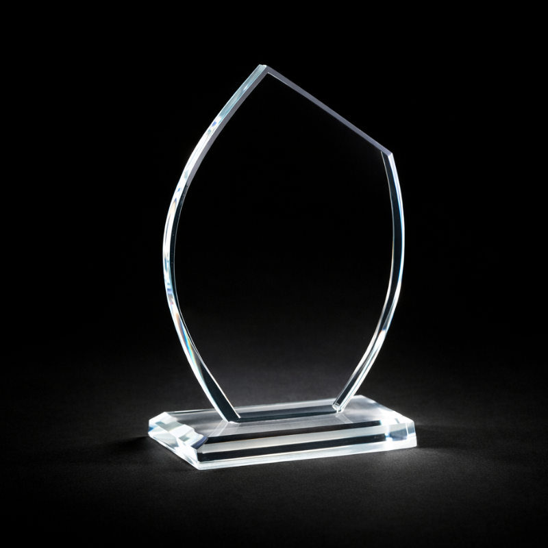 Trophée en verre avec possibilité de personnaliser le trophée avec gravure laser (logo et textes)