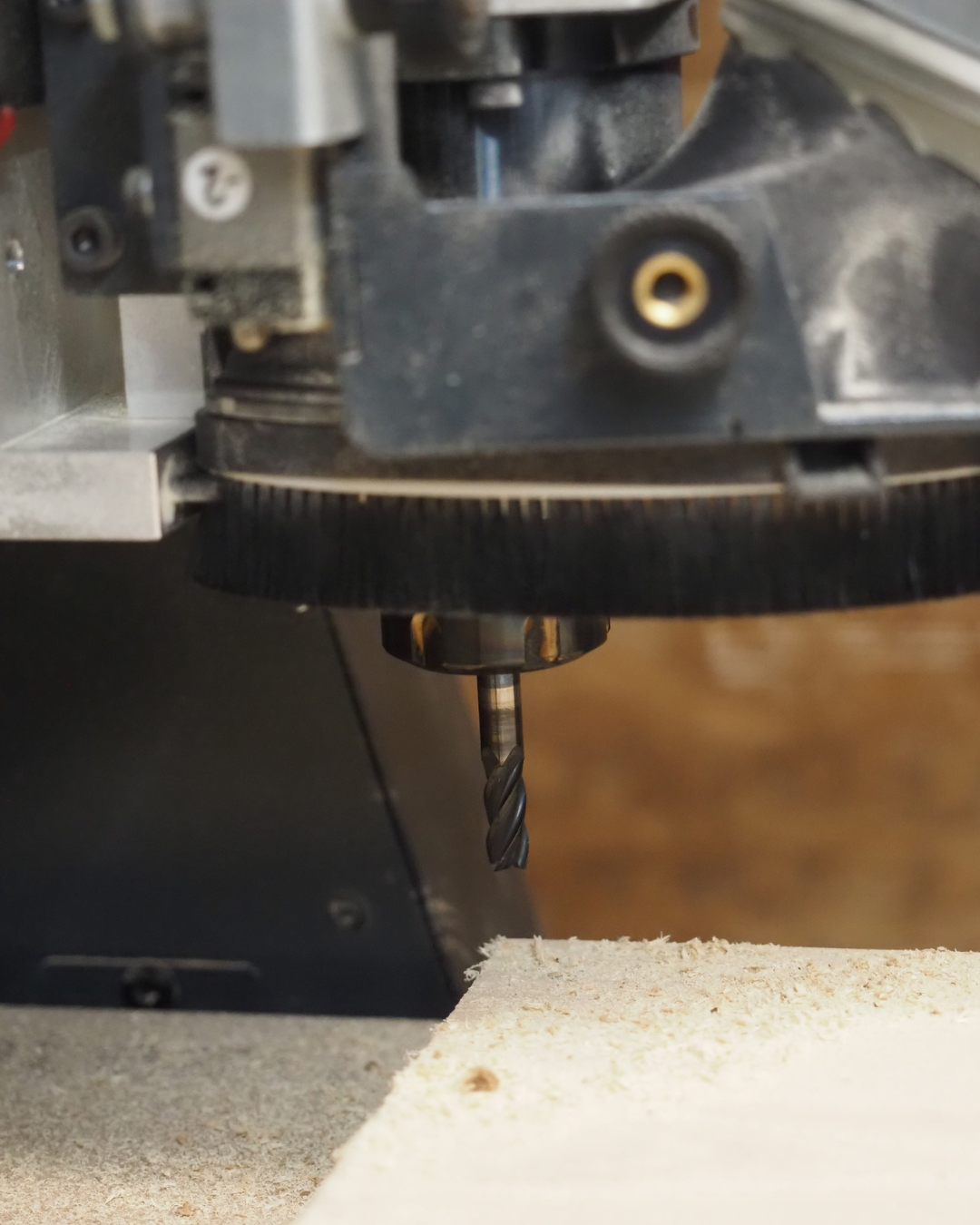 La fraiseuse CNC permet de former et graver directement dans le bois brut, créant des volumes et reliefs 3D d’une grande précision.